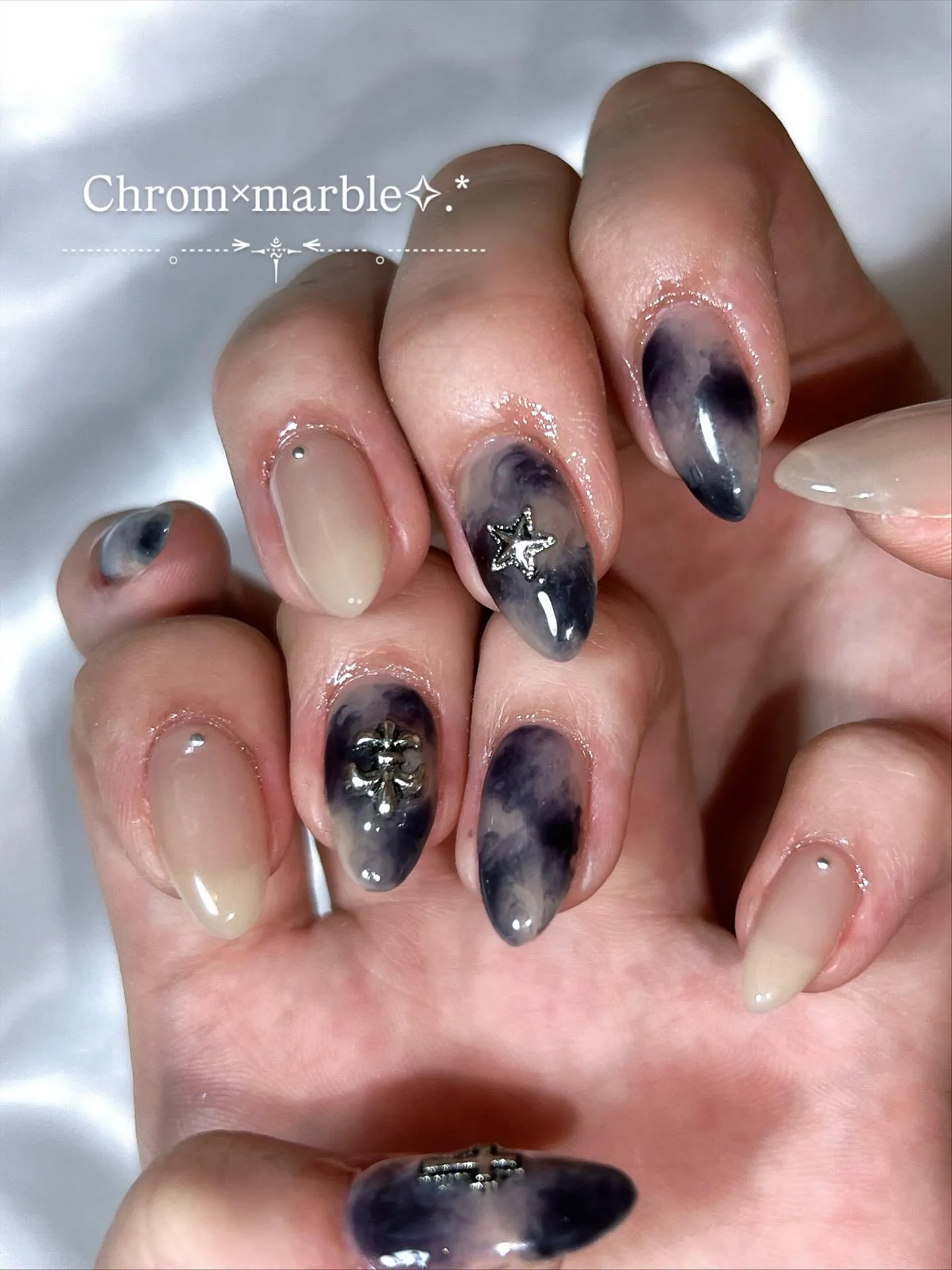 マーブルにクロムパーツ!✝️ #マーブルネイル#ニュアンスネイル#クロムネイル#恵比寿ネイル#恵比寿ネイルサロン#ワンホンネイル
